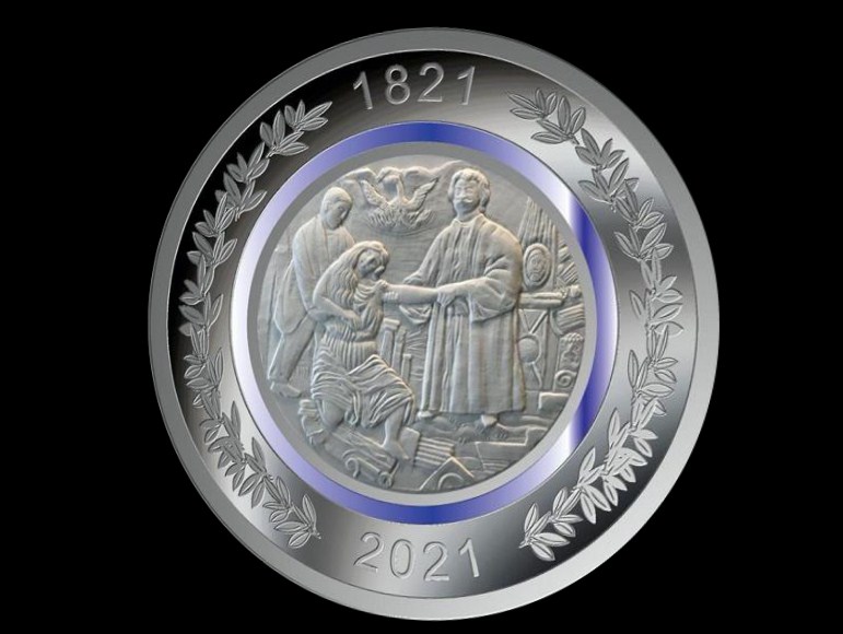 Το έργο, του λαϊκού ζωγράφου Θεοφίλου Χατζημιχαήλ «Αναγεννηθείσα Ελλάδα» απεικονίζεται στον «ΠΡΟΠΟΜΠΟ», το συλλεκτικό μετάλλιο με το οποίο ανοίγει η αυλαία του Νομισματικού Προγράμματος της Επιτροπής «ΕΛΛΑΔΑ 2021», για την διακοσιοστή επέτειο της Επανάστασης του 1821.