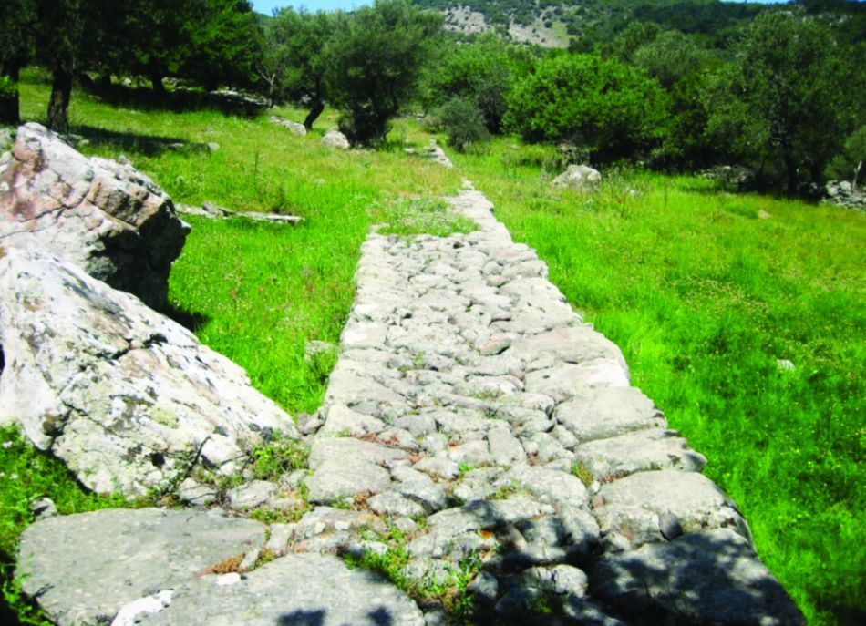Μεγάλου μήκους, καλοδιατηρημένο πλακόστρωτο μονοπάτι, νότια του Παλαιοκάστρου, που οδηγεί στην περιοχή των Παρακοίλων