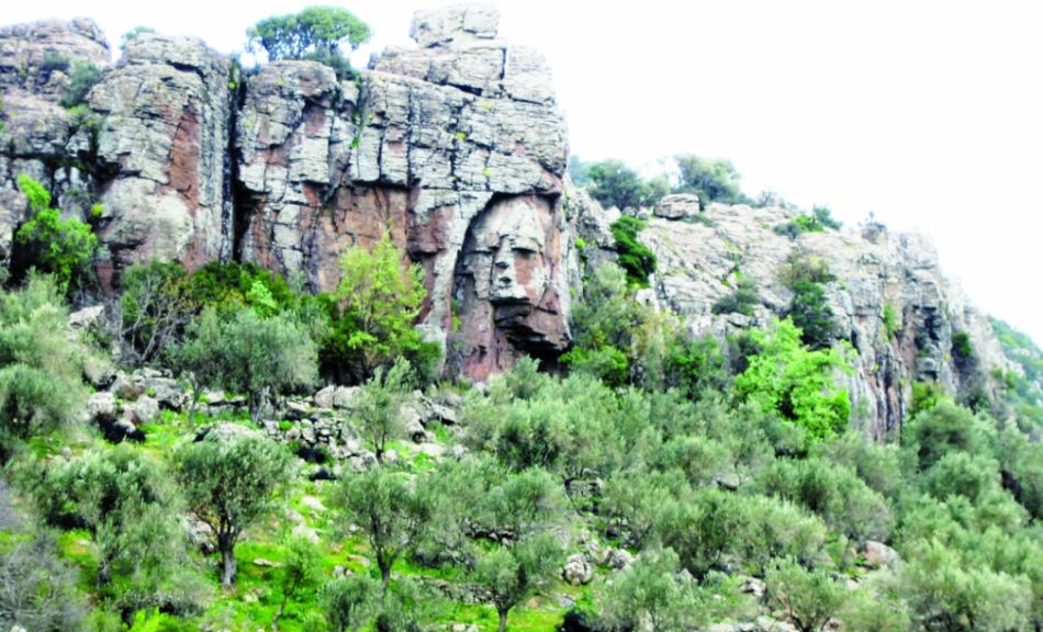 Στο βάθος, 1260 μέτρα βορειοδυτικά, υψώνεται η κορυφή της Ίσσας4. Μπροστά μας προβάλει η πετρώδης έξαρση του Παλαιόκαστρου5 και στη βάση του, επιβλητική η «Μορφή της Ίσσας», δεσπόζει στο χώρο, καθώς ατενίζει αγέρωχη ολόκληρη τη λεκάνη μέχρι πέρα τον κόλπο της Καλλονής.