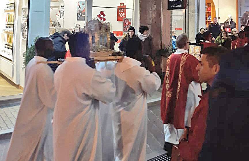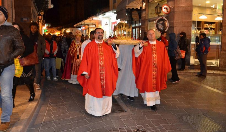 Η λιτανεία των λειψάνων του Αγίου Βαλεντίνου από την Καθολική Εκκλησία της Μεταστάσεως της Θεοτόκου