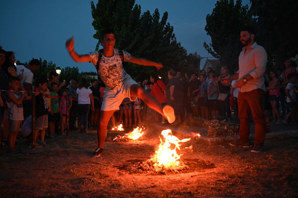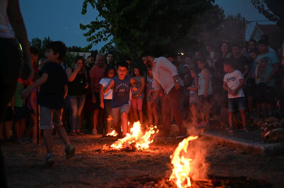 Ακολούθησε το άναμμα των τριών φωτιών σύμφωνα με το έθιμο και κατά τον παραδοσιακό τρόπο, με κλιματσούρες, στεφάνια, ξερά κλαδιά, κ.α., ενώ γυναίκες, άνδρες και παιδιά, επιδόθηκαν στο “πήδημα” πάνω από τις φλόγες, αφού σύμφωνα με την παράδοση, με τον τρόπο αυτό φεύγουν όλες οι κακομοιριές και οι αρρώστιες. Το πήδημα αυτό έχει μαγική σημασία, αφού όποιος πηδάει πάνω από τη φλόγα, ενώνεται μ’ αυτήν και παίρνει τη δύναμή της. Επίσης, συμβολίζει το πέρασμα από το παλιό στο νέο, από το κακό στο καλό.