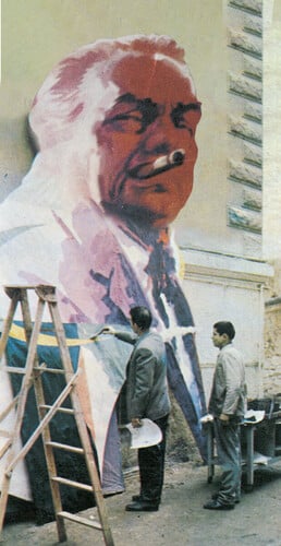 Ο Γιώργος Βακιρτζής σταμάτησε να ζωγραφίζει γιγαντοαφίσες το 1968. Ο επισκέπτης της έκθεσης, δεκαετίες μετά τη δημιουργία τους, μπορεί να αισθανθεί τη δύναμη και το ισχυρό μήνυμα που μεταφέρουν μέσα από στοιχεία της λαϊκής ζωγραφικής, της εξπρεσιονιστικής του γραφής, μέσα από γραμματοσειρές που είναι και σήμερα αξεπέραστες και νοήματα που συμπυκνώνονται σε ένα προσωπικό και μοναδικό ύφος.
