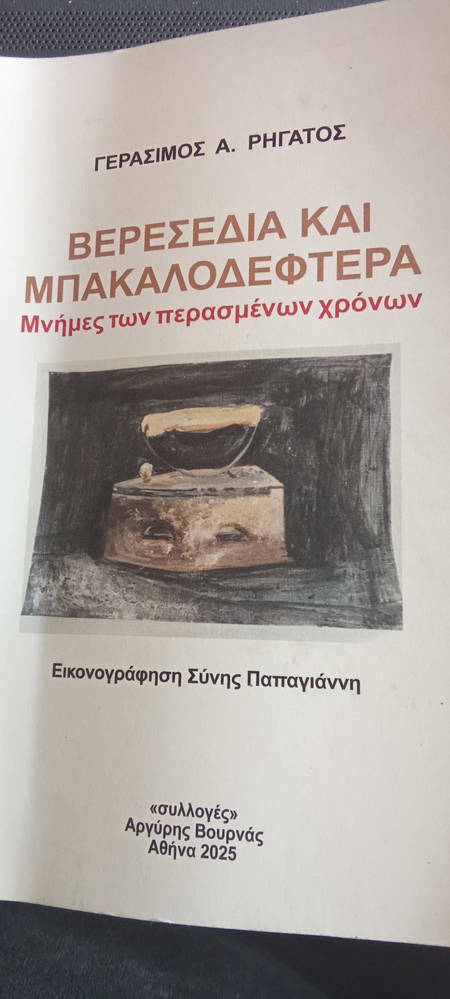 Γεράσιμος Α. Ρηγάτος: Βερεσέδες και Μπακαλοδέφτερα. Μνήμες των περασμένων χρόνων (Εικονογράφηση: Σύνη Παπαγιάννη), Εκδόσεις «Συλλογές» - Αργύρης Βουρνάς, Αθήνα 2025, σελ. 95
