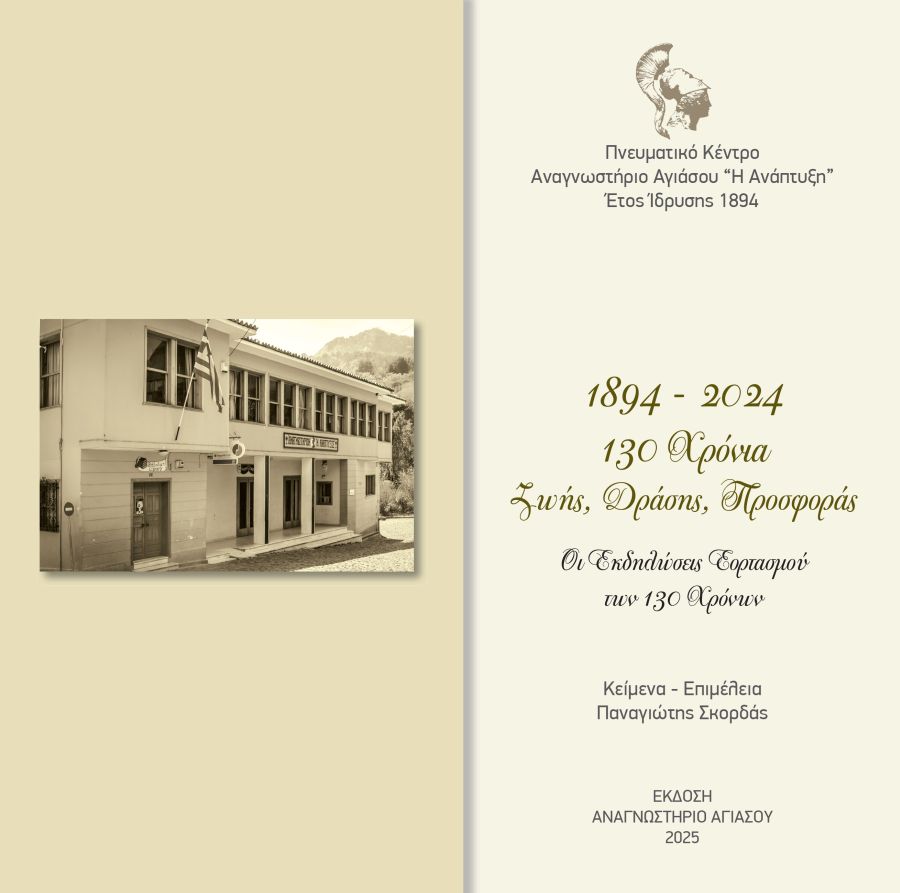 - Παναγιώτης Σκορδάς (κείμενα - επιμέλεια):Πνευματικό Κέντρο Αναγνωστήριο Αγιάσου «Η Ανάπτυξη». 1894 - 2024. 130 χρόνια ζωής, δράσης, προσφοράς. Οι εκδηλώσεις εορτασμού των 130 χρόνων, Έκδοση Αναγνωστηρίου Αγιάσου, 2025, σελ. 84