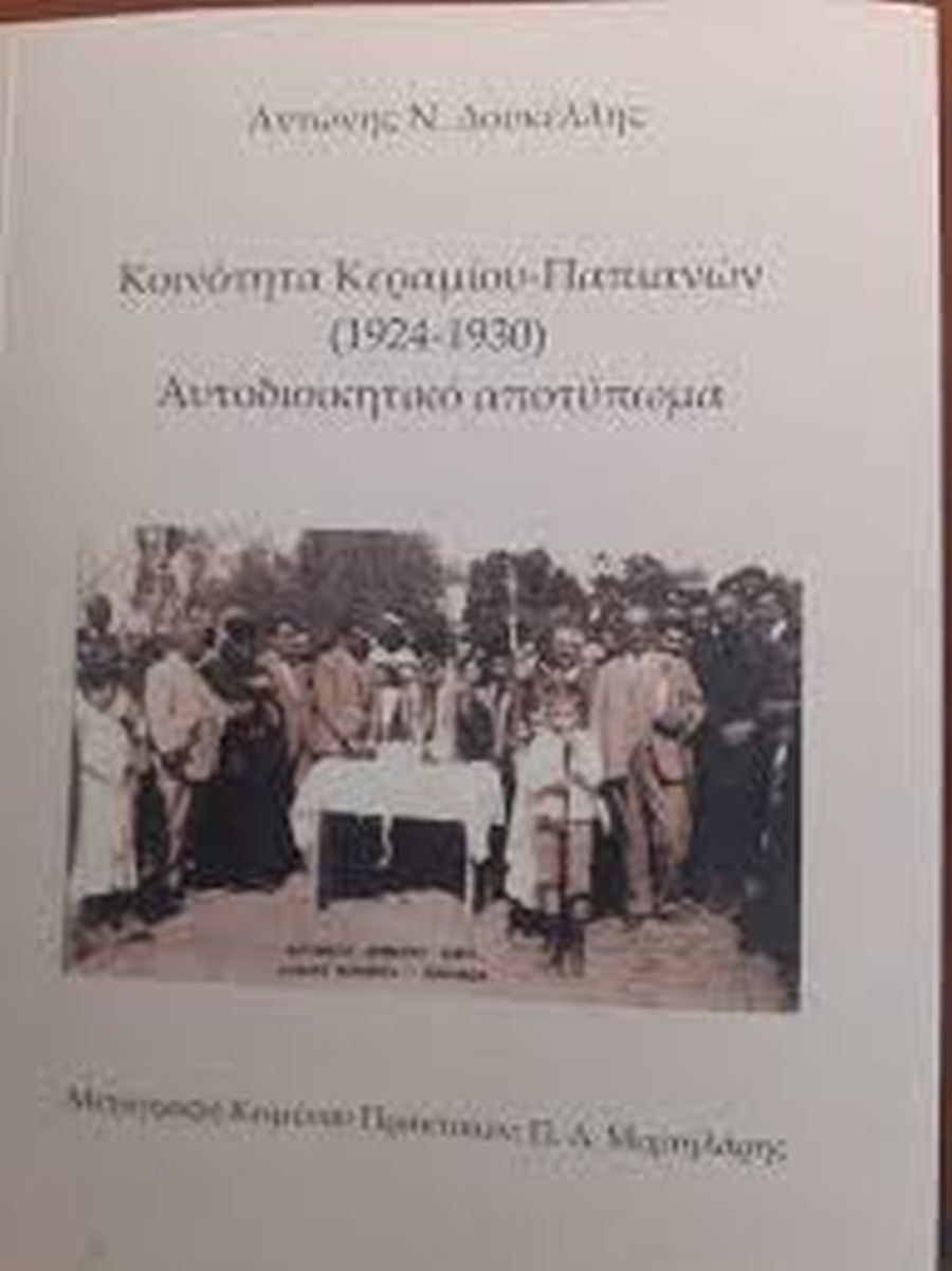 Αντώνης Ν. Δουκέλλης: Κοινότητα Κεραμίου - Παπιανών (1924 -1930). Αυτοδιοικητικό αποτύπωμα. Μεταγραφή κειμένου Πρακτικών: Π.Δ. Μιχαηλάρης, Εκδόσεις Άπαρσις, 2025, σελ. 415