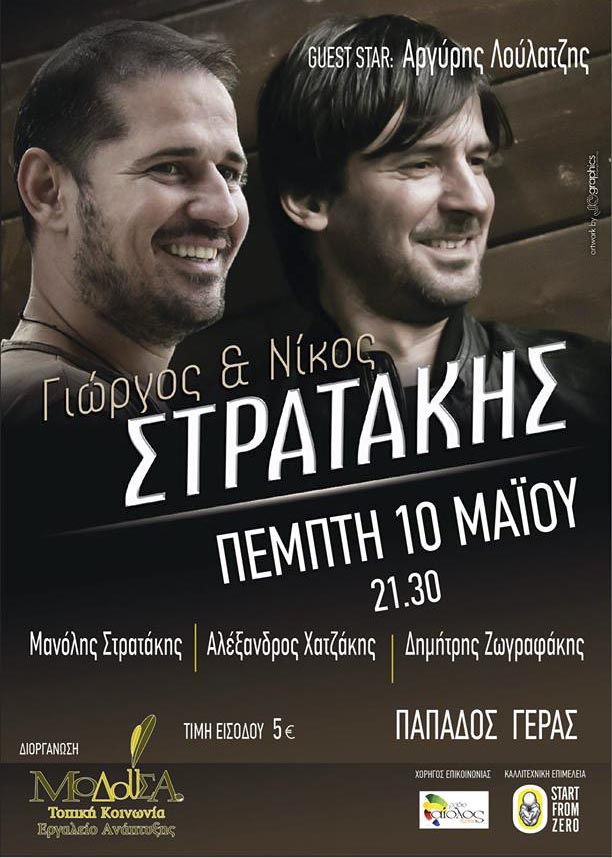 Για πρώτη φορά, αυτή την Πέμπτη, στο χώρο, της «Μοδούσας» στον Παπάδο, ο Νίκος και ο Γιώργος Στρατάκης. Εγγύηση για γνήσιο κρητικό γλέντι δίνει ο Νίκος Καξηρής!