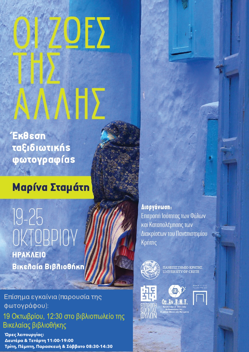Το Σάββατο 19 Οκτωβρίου στη Βικελαία Βιβλιοθήκη, Ηράκλειο Κρήτης θα γίνουν τα εγκαίνια της ατομικής έκθεσης φωτογραφίας της Μαρίνας Σταμάτη με τίτλο «Οι Ζωές της Άλλης».