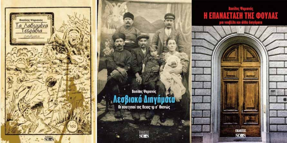 Ο Πολιτιστικό Σύλλογος Βρισαγωτών Λέσβου Αθήνας σας προσκαλεί στην παρουσίαση των λογοτεχνικών βιβλίων του Βασίλη Ψαριανού «Τα Λαδωμένα Τετράδια», «Λεσβιακά Διηγήματα» και «Η Επανάσταση της Φούλας». Η εκδήλωση θα πραγματοποιηθεί την Παρασκευή, 30 Νοεμβρίου, στις 6 μ.μ. στην αίθουσα «Ευτυχία και Αλέκος Πολύζος», στην οδό 3ης Σεπτεμβρίου 144, στον 3ο όροφο.