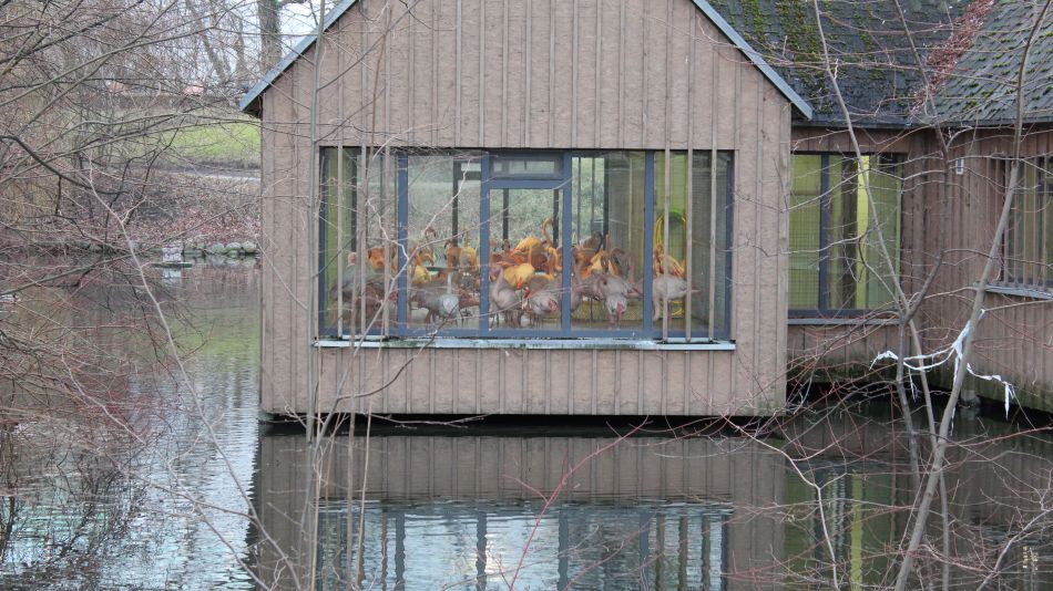 Το Νοέμβριο του 2016, o ζωολογικός κήπος του Βερολίνου στέγασε τα πτηνά του σε εσωτερικούς χώρους ως προληπτικό μέτρο μετά την επιβεβαίωση των πρώτων κρουσμάτων της γρίπης H5N8 στη Γερμανία. Η δράση αυτή συνέπεσε με τη συνήθη εποχική μετακίνηση των πουλιών στα χειμερινά τους καταφύγια. Θίγοντας ζητήματα μετανάστευσης, εντοπιότητας και εκτόπισης, ο Βαμβουκλής εξετάζει συνάφειες μεταξύ της κοινωνίας των ανθρώπων και των ζώων διά μέσου της συγκατοίκησης ενός σμήνους φλαμίνγκο. Το έργο επισημαίνει τις δυναμικές της κυριαρχίας, της καταπίεσης και του αποκλεισμού κάνοντας αναφορά στην πατρίδα του Βαμβουκλή, τη Λέσβο, δημοφιλή παγκοσμίως προορισμό για παρατηρητές αποδημητικών ειδών καθώς και μείζον σημείο ενδιαφέροντος για την προσφυγική και ανθρωπιστική κρίση στην Ευρώπη.