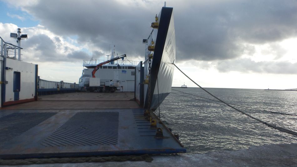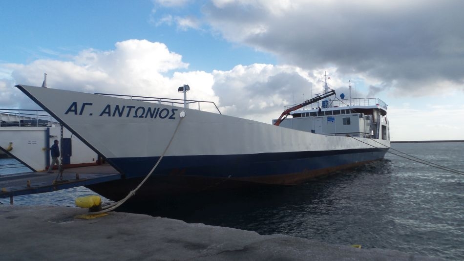 Χτες το πρωί στο Εμπορικό Λιμάνι. Τα φορτηγά του Δήμου έχουν αποχωρήσει και οι οικίσκοι εκφορτώνονται από το πλοίο «Άγιος Αντώνιος»