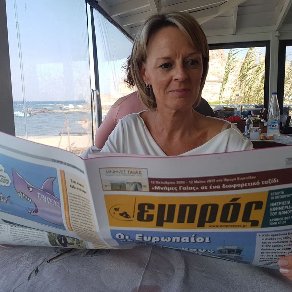 Την εφημερίδα μας διάβαζε χτες η Πρέσβης της Σουηδίας στην Ελλάδα Σάρλοτ Σαμελίν (Charlotte Sammelin) και μάλιστα με το πρωτοσέλιδο του Βαγγέλη Παπαντώνη για την αύξηση των πτήσεων τσάρτερ. Η πρέσβης επισκέφτηκε τη Λέσβο, και όπως μας είπε συναντήθηκε με τον Δήμαρχο Λέσβου, Σπύρο Γαληνό, αφού είδε από κοντά το Κέντρο της Μόριας, και υποσχέθηκε ότι θα επανέλθει στο νησί μας για διακοπές.