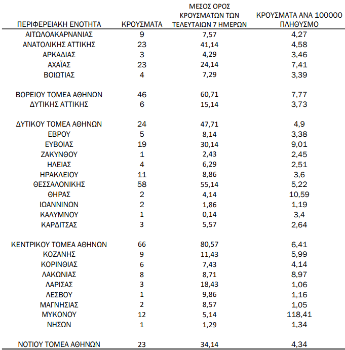 Η κατανομή των κρουσμάτων κορωνοϊού