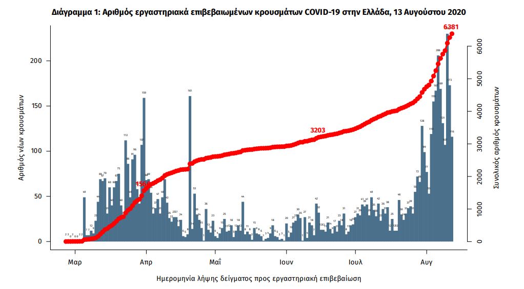 Σήμερα ανακοινώνουμε 204 νέα κρούσματα του νέου ιού στη χώρα, εκ των οποίων τα 12 εντοπίστηκαν κατόπιν ελέγχων στις πύλες εισόδου της χώρας. Ο συνολικός αριθμός των κρουσμάτων είναι 6381, εκ των οποίων το 55.0% αφορά άνδρες.